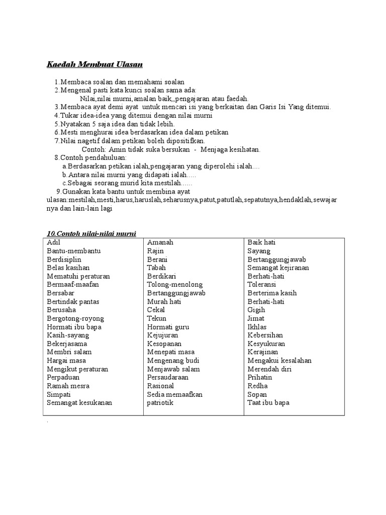 30 penerapan nilai murni dalam pengajaran bahasa melayu. Mengenal pasti penghayatan 17 nilai. Contoh Karangan SPM ISU.